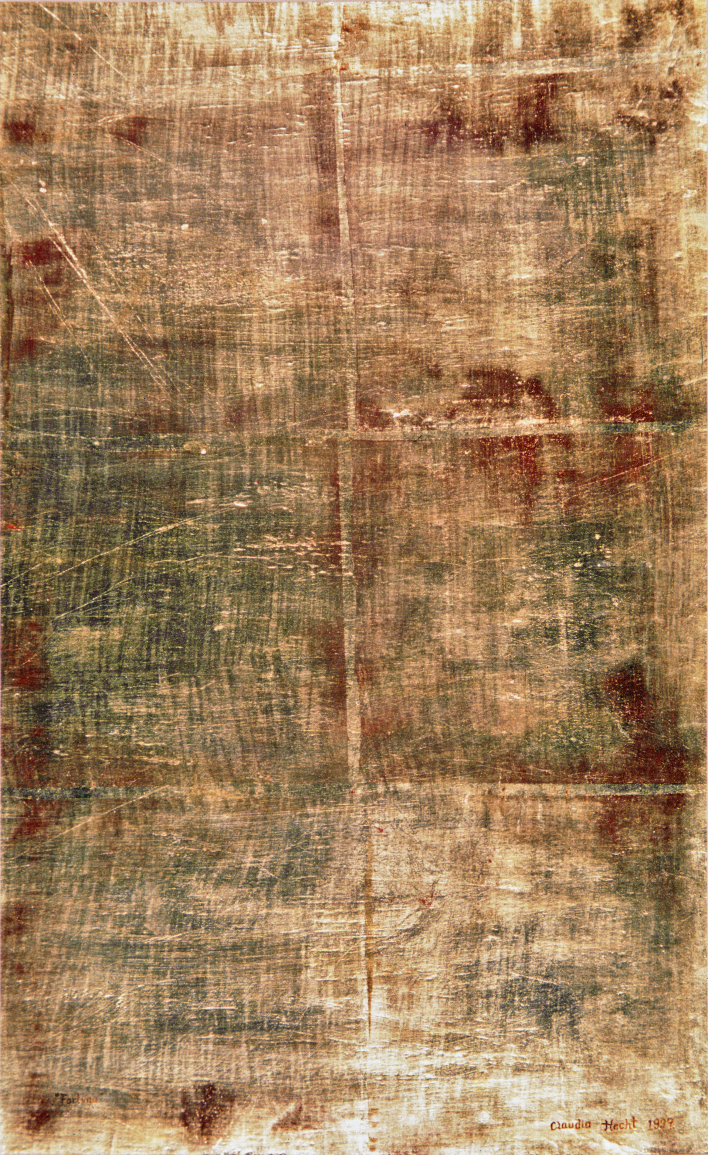 “HIDDEN PASSION” Oil on metal leaf, over Gesso & canvas covered wood panel 1997 H 50cm x W 30cm H 19 ¾” x W 12”