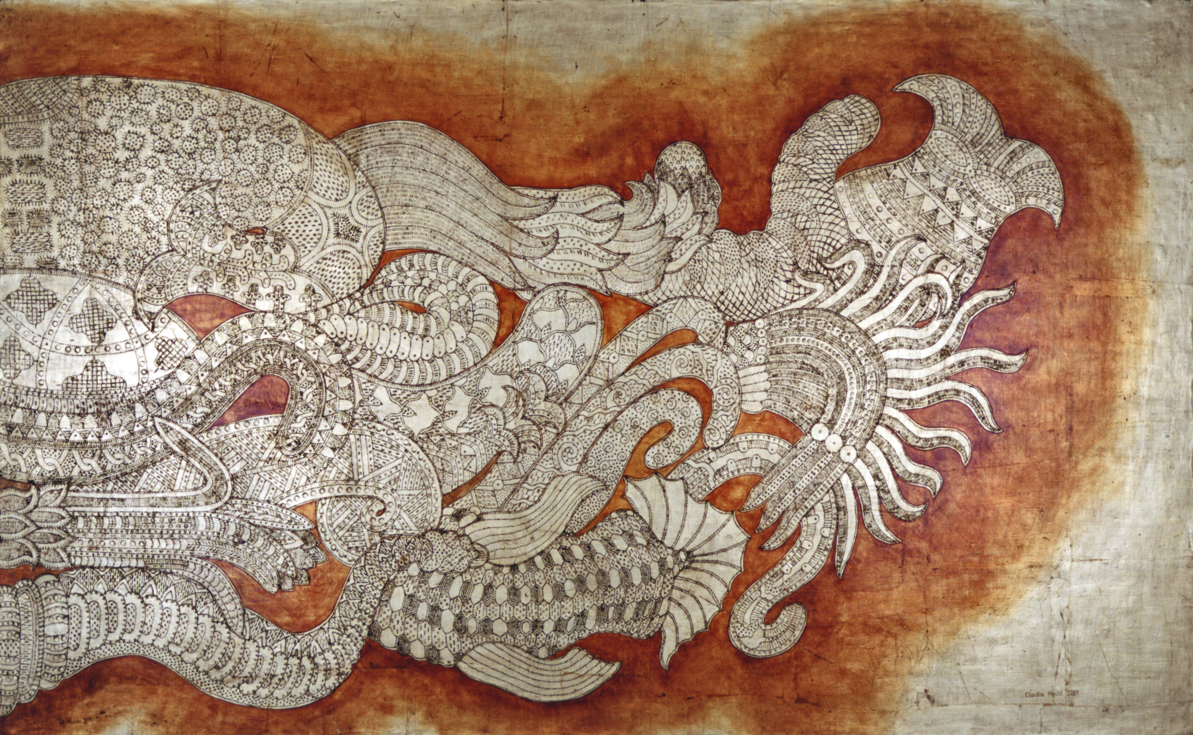 Oil on metal leaf, over Gesso & canvas covered wood panel