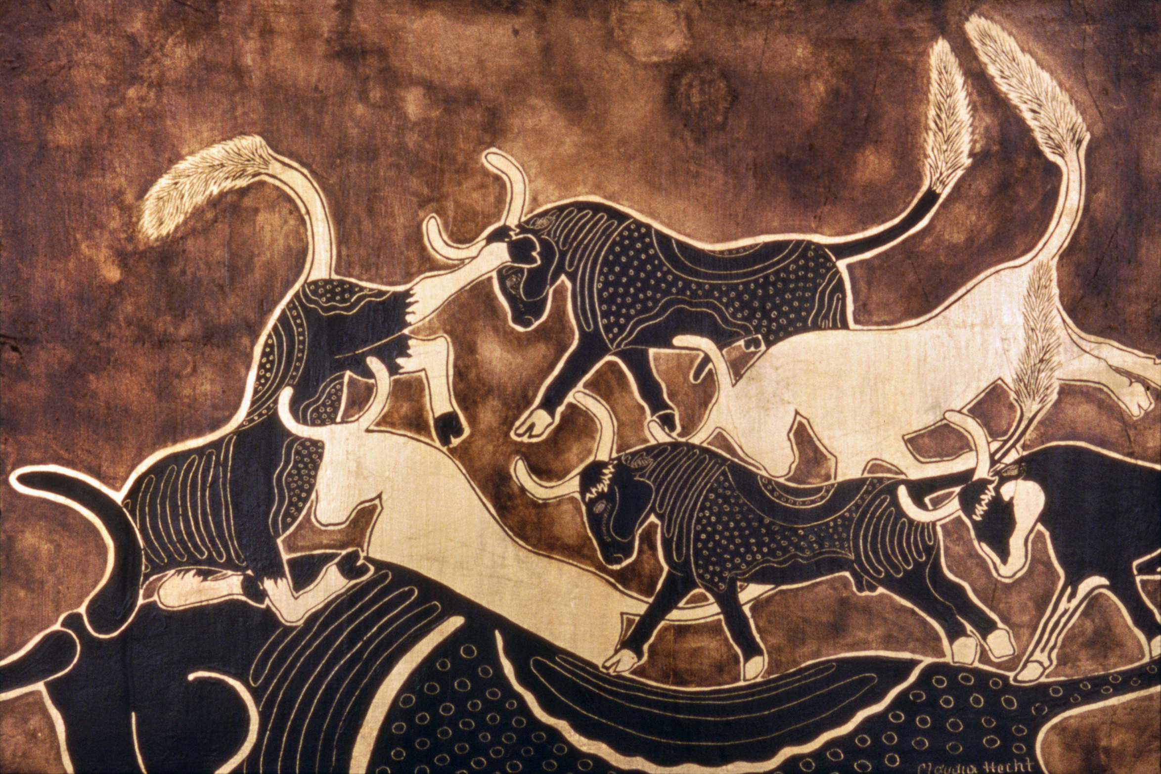 Oil on metal leaf, over Gesso & canvas covered glass panel 1999 H 32cm x W 47cm H 12 ½” x W 18 ½” “MESURA” Oleo, hoja de metal, lienzo y panel de vidrio 1999 H 32cm x W 47cm H 12 ½” x W 18 ½”